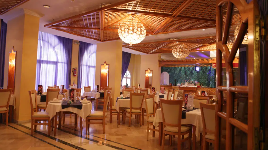 L'hôtel propose un restaurant-buffet, "Le Carnaval", où vous pourrez savourer une large gamme de plats internationaux et locaux, ainsi qu'un restaurant à la carte, "La Fiesta", offrant des menus variés dans un cadre élégant.